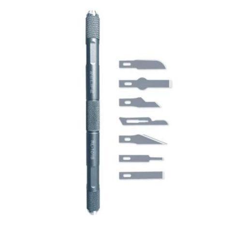 - el bisturí cuenta con 7 cuchillas distintas delgadas para que puedan realizar unos cortes precisos al momento de realizar mantenimiento a tus celulares